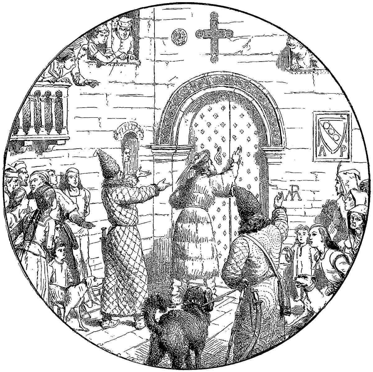I must not omit to tell you of the orderly way in which the Kaan’s Barons and others conduct themselves in coming to his presence. In the first place, within a half mile of the place where he is, out of reverence for his exalted majesty, everybody preserves a mien of the 458greatest meekness and quiet, so that no noise of shrill voices or loud talk shall be heard. And every one of the chiefs and nobles carries always with him a handsome little vessel to spit in whilst he remain in the Hall of Audience—for no one dares spit on the floor of the hall,—and when he hath spitten he covers it up and puts it aside.{6} So also they all have certain handsome buskins of white leather, which they carry with them, and, when summoned by the sovereign, on arriving at the entrance to the hall, they put on these white buskins, and give their others in charge to the servants, in order that they may not foul the fine carpets of silk and gold and divers colours.]