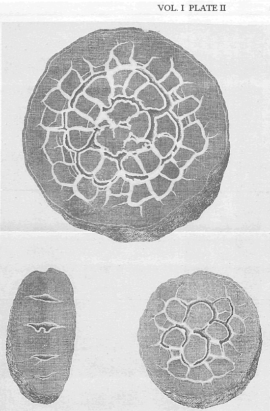 Pyrites is not only found in great masses along with the coal strata; it is contained in the veins which traverse those strata, and in the minute ramifications of those veins, which are occasioned by the contraction of the mass, and generally divide it into small cubical pieces; but besides that extrinsic connection, (as it may be called,) with the stratum of coal, pyrites is found intimately connected with that solid body, in being mixed with its substance. If, therefore, it were proved, that either the one or other of those two substances had been consolidated by fusion, the other must be acknowledged as having had the same origin; but now I am to prove, from the natural history of mineral coal, that pyrites had been there formed by fusion; and then, by means of the known origin of that sulphureo-metallic substance, we shall extend our knowledge to the origin of every other mineral body.