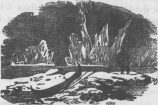 [pg 28]In this way it spouts the water in beautiful jets from twenty to thirty feet in height. The voice of the whale is like a low murmuring: it has a smooth skin all over its body, under which lies that thick lard which yields the oil for which they are so much sought. The Greenland whale has but two side-fins; its tail is in the shape of a crescent; it is an instrument of immense power; it has been sometimes known with one stroke to hurl large boats high into the air, breaking them into a thousand fragments. The whale shows great affection for her young, which is called the calf; the fishermen well know this, and turn it to their own account; they try to strike the young with the harpoon, which is a strong, barbed instrument, and if they do this they are almost sure of securing the mother also, as nothing will induce her to leave it.