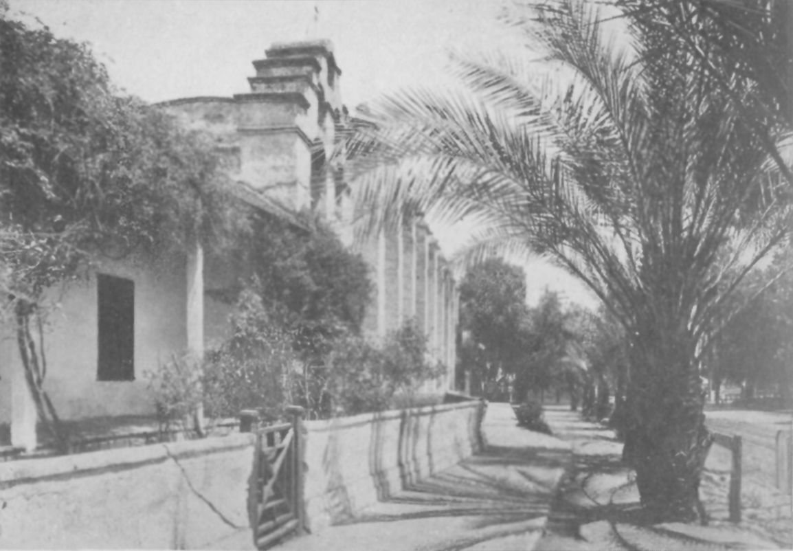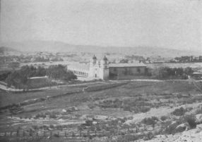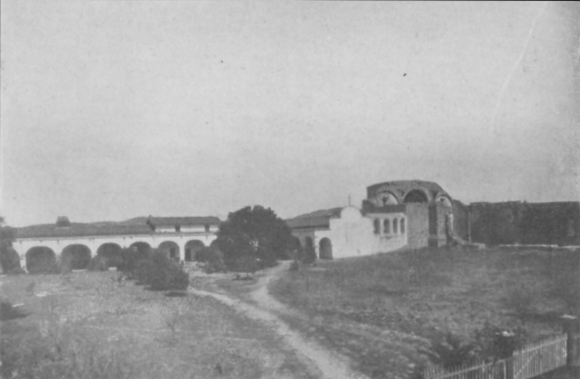 Showing monastery recently built behind the old Mission arches.
