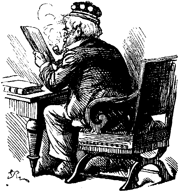 Dolph. (surprised). Why, there's Aunt MARIA got the 'ump—for a little thing like that! Let me finish with CARRIE. (Reads.) "She is of an intellectual turn of mind." ("'Ear, 'ear!" from FREDDY.) "Very fond of reading." Takes in Sloper's 'Alf 'Oliday regular! "Steadfast in her engagements." 'Ullo, CARRIE!