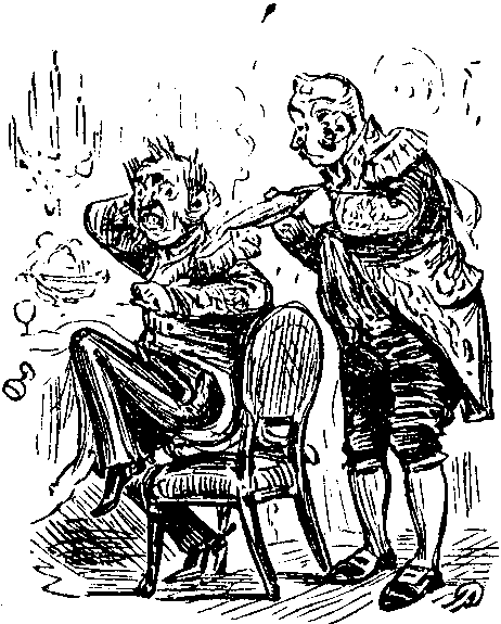 Dolph. (in a white rage). I tell you what it is, Miss CARRIE BICKERTON, you appear to me to be turning a 'armless joke into a mejium for making nasty spiteful insinuations, and I, for one, am not going to put up with it, whatever others may! So, not being partial to being turned into redicule and made to look a fool in company, I'll leave you to spend the rest of the evening by yourselves, and wish you a very good-night!