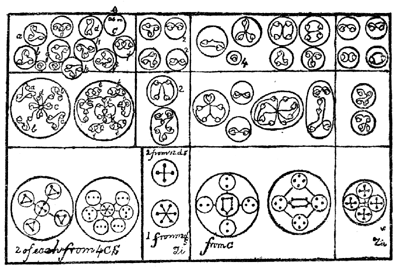 I remember the occasion vividly. Mr. Leadbeater was then staying at my house, and his clairvoyant faculties were frequently exercised for the benefit of myself, my wife and the theosophical friends around us. I had discovered that these faculties, exercised in the appropriate direction, were ultra-microscopic in their power. It occurred to me once to ask Mr. Leadbeater if he thought he could actually see a molecule of physical matter. He was quite willing to try, and I suggested a molecule of gold as one which he might try to observe. He made the appropriate effort, and emerged from it saying the molecule in question was far too elaborate a structure to be described. It evidently consisted of an enormous number of some smaller atoms, quite too many to count; quite too complicated in their arrangement to be comprehended. It struck me at once that this might be due to the fact that gold was a heavy metal of high atomic weight, and that observation might be more successful if directed to a body of low atomic weight, so I suggested an atom of hydrogen as possibly more manageable. Mr. Leadbeater accepted the suggestion and tried again. This time he found the atom of hydrogen to be far simpler than the other, so that the minor atoms constituting the hydrogen atom were countable. They were arranged on a definite plan, which will be rendered intelligible by diagrams later on, and were eighteen in number.