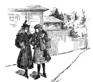 Winnie came out to meet her as she came in at the gate panting and scarlet-faced.[Pg 12]