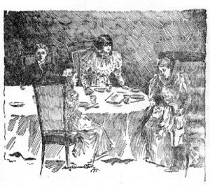 "I say," remarked Winnie, at the rather doleful dinner-table, "look here, Gypsy."