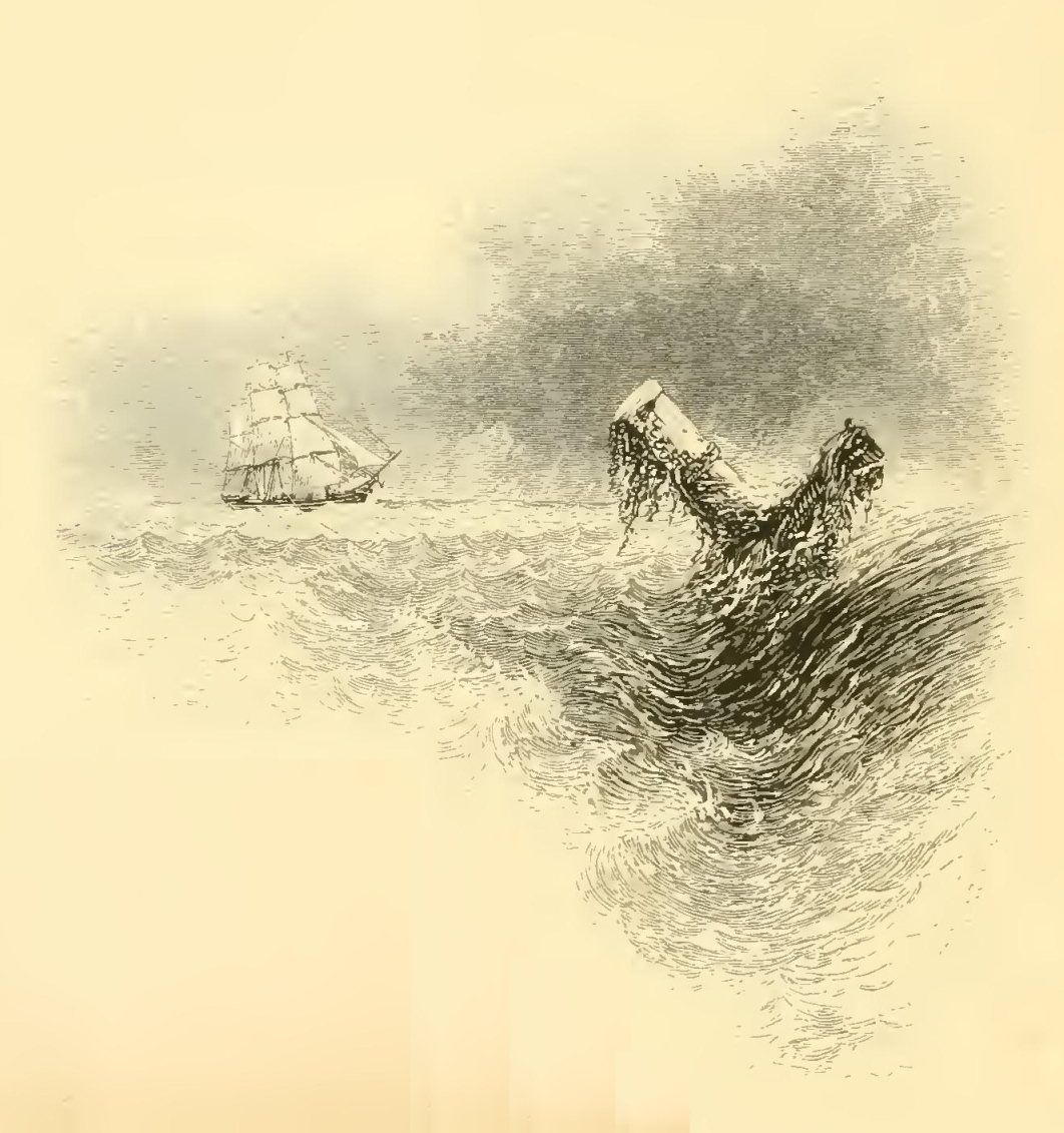 We one day descried some shapeless object drifting at a distance. At sea, every thing that breaks the monotony of the surrounding expanse attracts attention. It proved to be the mast of a ship that must have been completely wrecked; for there were the remains of handkerchiefs, by which some of the crew had fastened themselves to this spar, to prevent their being washed off by the waves. There was no trace by which the name of the ship could be ascertained. The wreck had evidently drifted about for many months; clusters of shell-fish had fastened about it, and long sea-weeds flaunted at its sides. But where, thought I, is the crew? Their struggle has long been over—they have gone down amidst the roar of the tempest—their bones lie whitening among the caverns of the deep. Silence, oblivion, like the waves, have closed over them, and no one can tell the story of their end. What sighs have been wafted after that ship! what prayers offered up at the deserted fireside of home! How often has the mistress, the wife, the mother, pored over the daily news, to catch some casual intelligence of this rover of the deep! How has expectation darkened into anxiety—anxiety into dread—and dread into despair! Alas! not one memento may ever return for love to cherish. All that may ever be known, is that she sailed from her port, “and was never heard of more!”