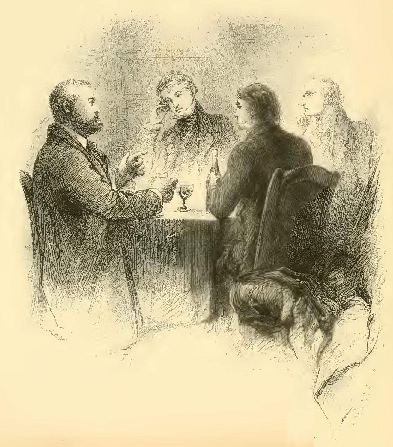 The story-teller, who was just putting a glass of wine to his lips as a refreshment after his toils, paused for a moment, looked at his inquirer with an air of infinite deference, and, lowering the glass slowly to the table, observed that the story was intended most logically to prove—