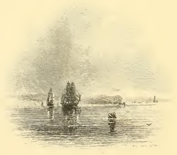 I said, that at sea all is vacancy; I should correct the impression. To one given to day-dreaming, and fond of losing himself in reveries, a sea voyage is full of subjects for meditation; but then they are the wonders of the deep and of the air, and rather tend to abstract the mind from worldly themes. I delighted to loll over the quarter-railing or climb to the main-top, of a calm day, and muse for hours together on the tranquil bosom of a summer’s sea; to gaze upon the piles of golden clouds just peering above the horizon, fancy them some fairy realms, and people them with a creation of my own;—to watch the gently undulating billows rolling their silver volumes, as if to die away on those happy shores.