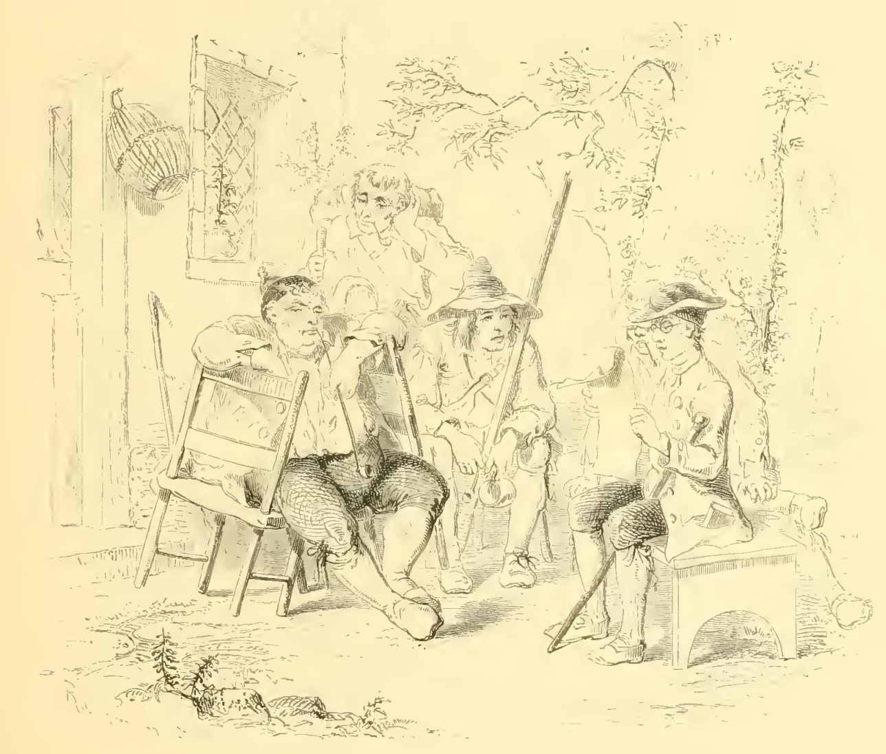 On inquiring further about him, I learnt that he was a universal favorite in the village and the oracle of the tap-room, where he delighted the rustics with his songs, and, like Sindbad, astonished them with his stories of strange lands and shipwrecks and sea-fights. He was much noticed too by gentlemen sportsmen of the neighborhood, had taught several of them the art of angling, and was a privileged visitor to their kitchens. The whole tenor of his life was quiet and inoffensive, being principally passed about the neighboring streams when the weather and season were favorable; and at other times he employed himself at home, preparing his fishing-tackle for the next campaign or manufacturing rods, nets, and flies for his patrons and pupils among the gentry.