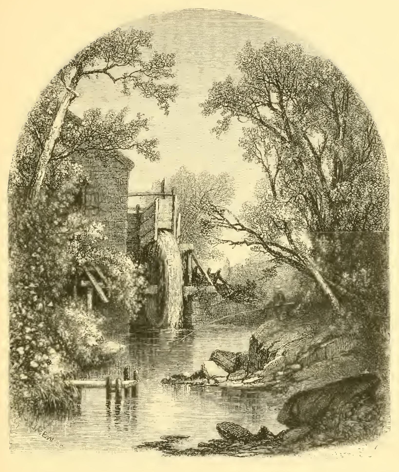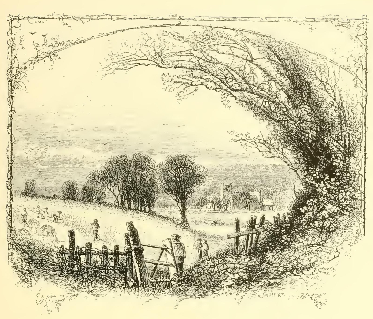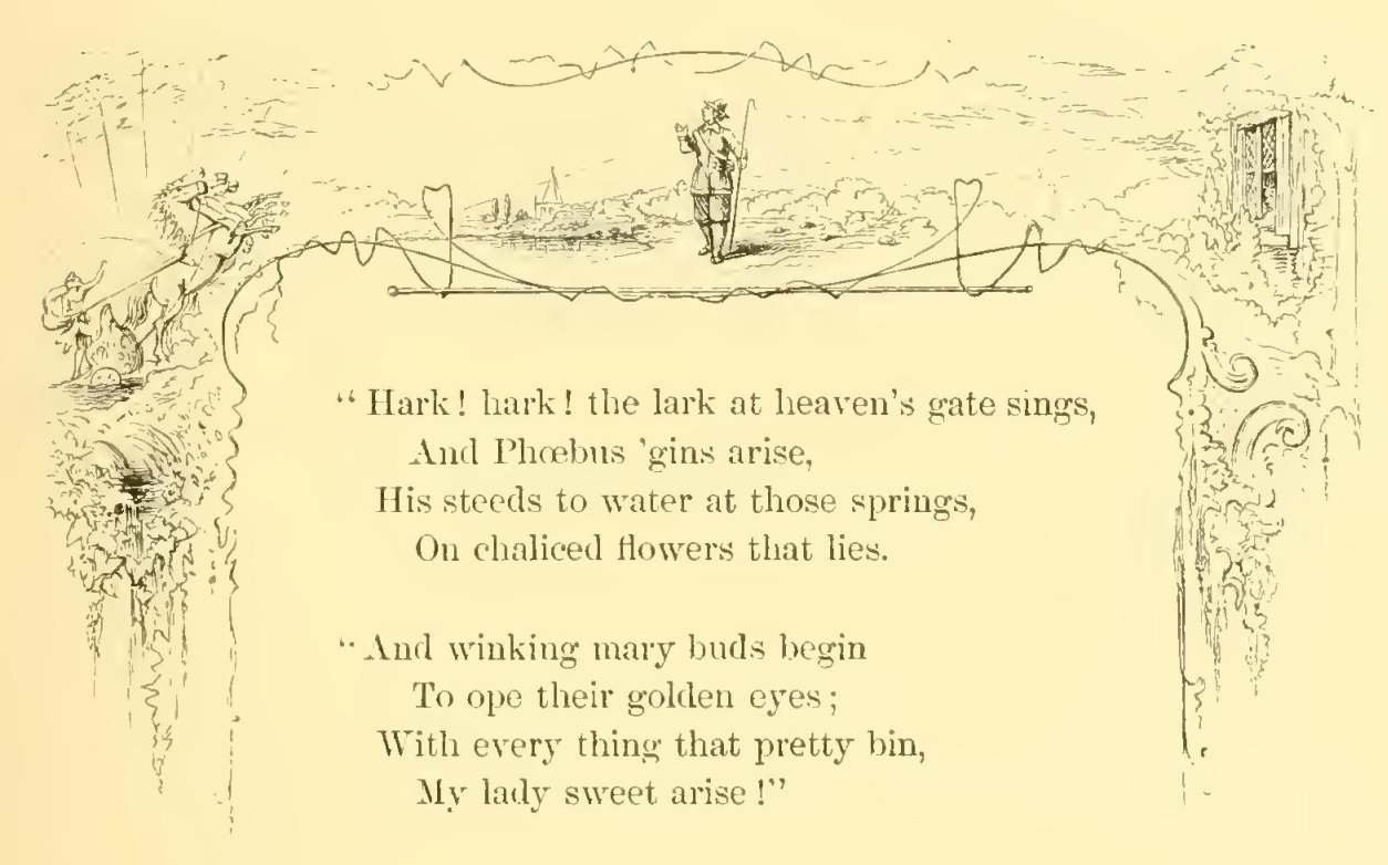 There is certainly something in angling—if we could forget, which anglers are apt to do, the cruelties and tortures inflicted on worms and insects—that tends to produce a gentleness of spirit and a pure serenity of mind. As the English are methodical even in their recreations, and are the most scientific of sportsmen, it has been reduced among them to perfect rule and system. Indeed, it is an amusement peculiarly adapted to the mild and highly-cultivated scenery of England, where every roughness has been softened away from the landscape. It is delightful to saunter along those limpid streams which wander, like veins of silver, through the bosom of this beautiful country, leading one through a diversity of small home scenery—sometimes winding through ornamented grounds; sometimes brimming along through rich pasturage, where the fresh green is mingled with sweet-smelling flowers; sometimes venturing in sight of villages and hamlets, and then running capriciously away into shady retirements. The sweetness and serenity of Nature and the quiet watchfulness of the sport gradually bring on pleasant fits of musing, which are now and then agreeably interrupted by the song of a bird, the distant whistle of the peasant, or perhaps the vagary of some fish leaping out of the still water and skimming transiently about its glassy surface. “When I would beget content,” says Izaak Walton, “and increase confidence in the power and wisdom and providence of Almighty God, I will walk the meadows by some gliding stream, and there contemplate the lilies that take no care, and those very many other little living creatures that are not only created, but fed (man knows not how) by the goodness of the God of Nature, and therefore trust in Him.”