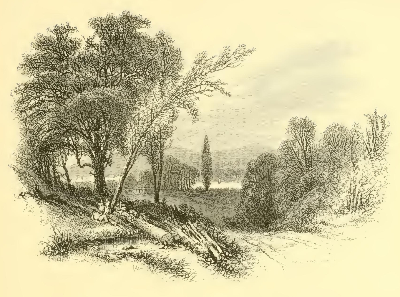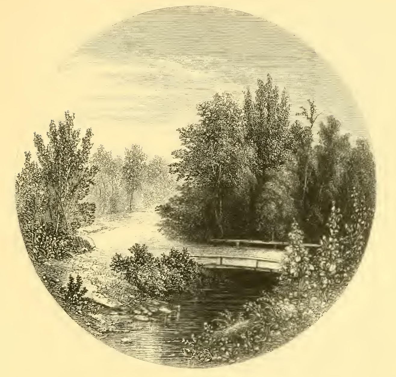 I recollect that when a stripling my first exploit in squirrel-shooting was in a grove of tall walnut trees that shades one side of the valley. I had wandered into it at noontime, when all Nature is peculiarly quiet, and was startled by the roar of my own gun as it broke the Sabbath stillness around and was prolonged and reverberated by the angry echoes. If ever I should wish for a retreat whither I might steal from the world and its distractions and dream quietly away the remnant of a troubled life, I know of none more promising than this little valley.