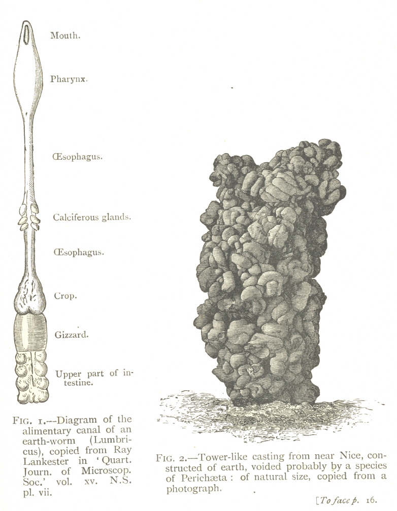 In the year 1869, Mr. Fish [5] rejected my conclusions with respect to the part which worms have played in the formation of vegetable mould, merely on account of their assumed incapacity to do so much work. He remarks that “considering their weakness and their size, the work they are represented to have accomplished is stupendous.” Here we have an instance of that inability to sum up the effects of a continually recurrent cause, which has often retarded the progress of science, as formerly in the case of geology, and more recently in that of the principle of evolution.