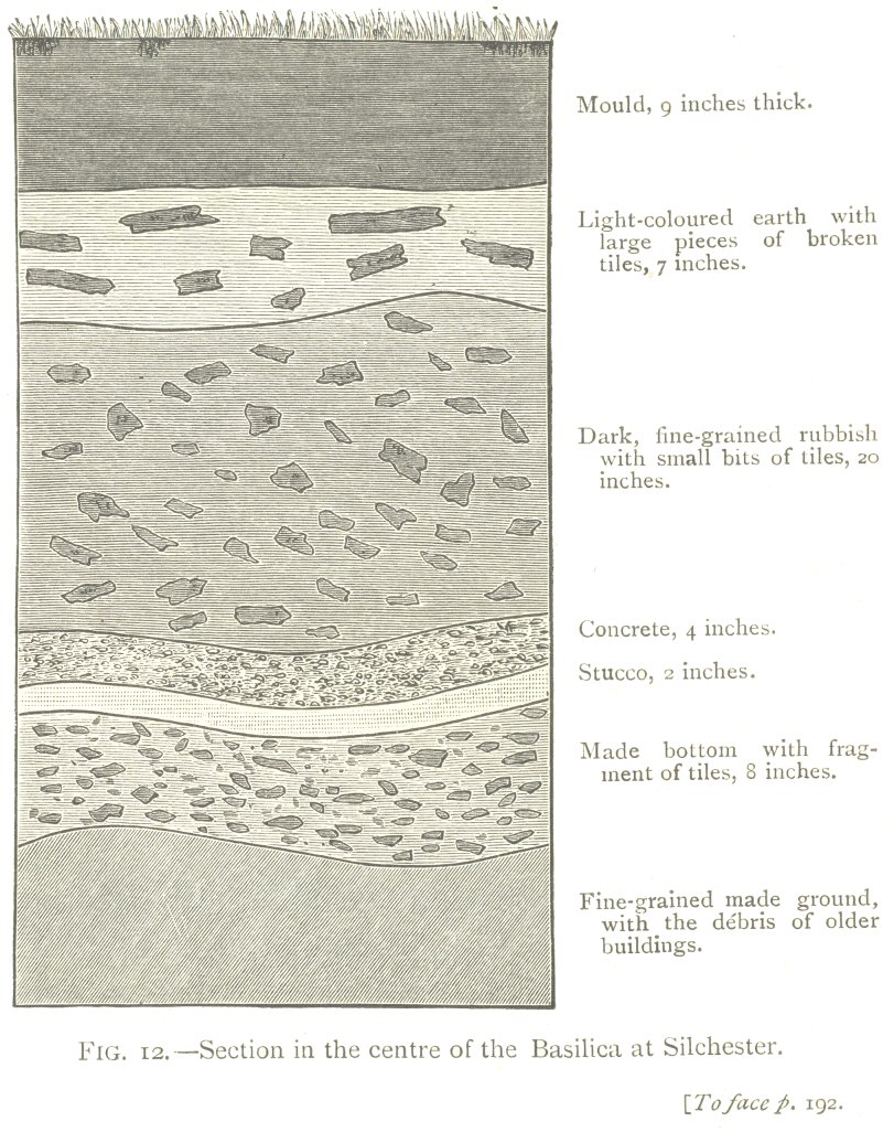 The accumulation of rubbish on the sites of great cities independent of the action of worms—The burial of a Roman villa at Abinger—The floors and walls penetrated by worms—Subsidence of a modern pavement—The buried pavement at Beaulieu Abbey—Roman villas at Chedworth and Brading—The remains of the Roman town at Silchester—The nature of the débris by which the remains are covered—The penetration of the tesselated floors and walls by worms—Subsidence of the floors—Thickness of the mould—The old Roman city of Wroxeter—Thickness of the mould—Depth of the foundations of some of the Buildings—Conclusion. |