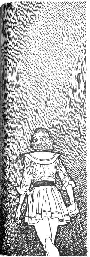 "We were picnicking," she said. "A whole lot of us. Somehow, I wandered away from the others...." One minute the hill was bright with sun, and the next it was deep in shadows and the wind that had been merely cool was downright cold. She shivered and glanced around expecting her mother to be somewhere near, holding out a sweater or jacket. There was no one at all in sight. Even then, she never thought of being frightened. She turned to retrace her steps. There was a big tree that looked familiar, and a funny rock behind it, half buried in the hillside. She was trudging toward it, humming under her breath, when the worry thoughts began to reach her. (... only a little creek so I don't think she could have fallen in ... not really any bears around here ... but she never gets hurt ... creek ... bear ... twisted ankle ... dark ... cold....) She had veered from her course and started in the direction of the first thought, but now they were coming from all sides and she had no idea at all which way to go. She ran wildly then, first one way, then the other, sobbing and calling.