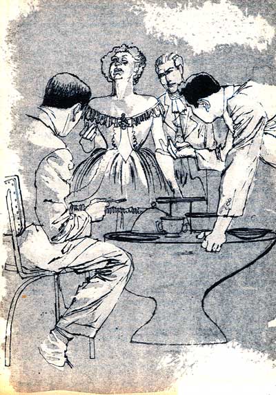 I nodded pleasantly and looked around the shabby room with a feeling of hopeful eagerness. Maybe this time, I thought, I'd get the answer. I had the same sensation I always had in these places—the quavery senile despair at being closed in a room with the single shaky chair, tottering bureau, dim bulb hanging from the ceiling, the flaking metal bed.