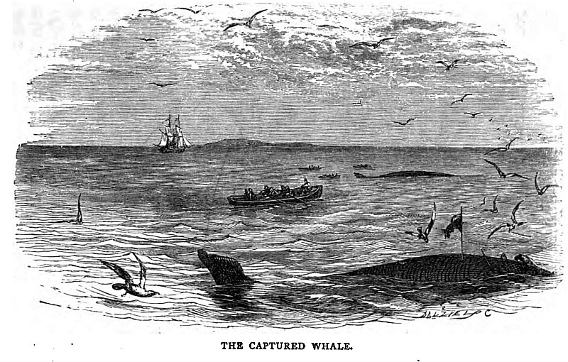 We had barely time to escape from beneath her flukes, with which she furiously lashed the water, until, her strength exhausted, she floated a lifeless mass.