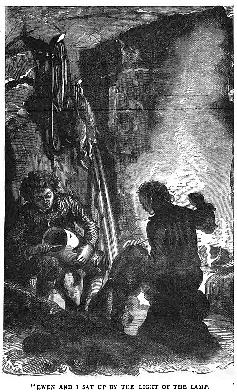 With the captain’s permission, I got him placed in my berth, where, after swallowing a basin of broth, he fell asleep. By frequent repetition of the same remedy, he was able, after a couple of days, to stand on his feet, when the captain administered a severe lecture, telling him that he must send him back by the first vessel we might fall in with. Ewen, however, begged so hard to remain, that the captain promised to consider the matter.