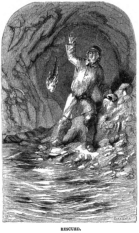 Of that I feared there was but little chance, for her dark hull quickly again disappeared, and I could no longer see even the least glimmer of light. Sandy, however, declared that he could, and on we pulled as before. I should have said that we passed another long hour before we once more saw the hull of the ship, and her tall masts swaying to and fro against the sky. It was no easy matter to get alongside, half full of water as was our boat. Thanks to the skill of Sandy, we at length succeeded in hooking on, and the boat was hoisted on board, by which time I was more dead than alive.