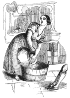 ‘Elizabeth, take care of Miss Jane,’ screams that worthy woman, who has been for a fortnight employed in getting this tremendous body of troops and baggage into marching order. ‘Hicks! Hicks! for Heaven’s sake mind the babies!’—‘George—Edward, sir, if you go near that porter with the trunk, he will tumble down and kill you, you naughty boy!—My love, do take the cloaks and umbrellas, and give a hand to Fanny and Lucy; and I wish you would speak to the hackney-coachmen, dear; they want fifteen shillings, and count the packages, love—twenty-seven packages,—and bring little Flo; where’s little Flo?—Flo! Flo!’—(Flo comes sneaking in; she has been speaking a few parting words to a one-eyed terrier, that sneaks off similarly, landward).