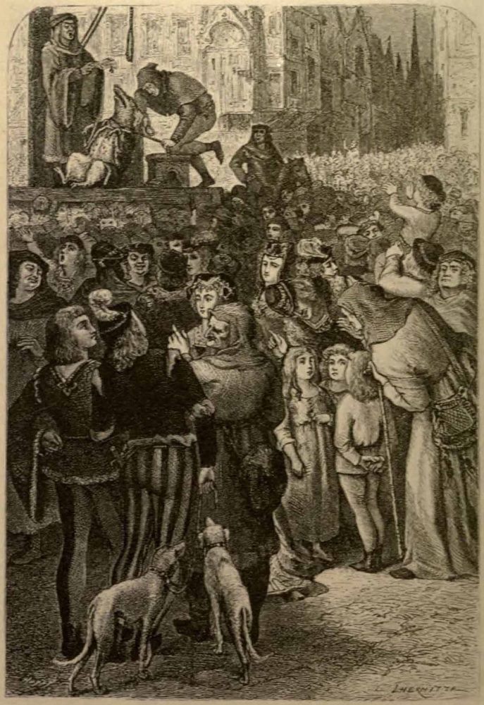 In 1386, an infanticidal sow was executed in the old Norman city of Falaise, and the scene was represented in fresco on the west wall of the Church of the Holy Trinity in that city. This curious painting no longer exists, and, so far as can be ascertained, has never been engraved. It has been frequently and quite fully described by different writers, and the frontispiece of the present volume is not a reproduction of the original picture, but a reconstruction of it according to these descriptions. It is taken from Arthur Mangin’s L’Homme et la Bête (Paris, 1872), of which all the illustrations are more or less fancy sketches. A full account of the trial and execution is given in the present volume.