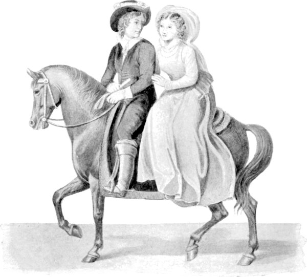 The illustration "On Saddle and Pillion" is the frontispiece, but the list of illustrations has it "Face p. 28".