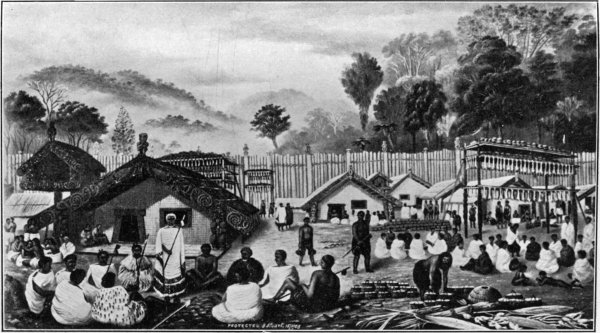 Interior of a Maori Pa, about the year 1840