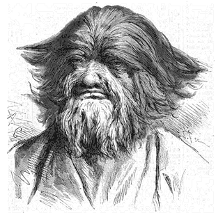 «N'ayant ni cheveux, ni barbe, ni moustaches, toute la face ainsi que le crâne et la partie postérieure du cou de ce curieux sujet disparaissent sous une abondance anormale de poils follets monstres qui; atteignent sur le front, le nez et les joues la longueur de la coiffure du chien griffon comme aspect et disposition des mèches, produisant au toucher la sensation qu'on éprouve en caressant un terre-neuve. Il est possible que cette invasion insolite ait amené l'atrophie du système pileux ordinaire, et il faudrait peut-être se garder d'aller chercher au delà d'une maladie de la peau pour en déterminer la cause. On sait depuis longtemps que les anomalies, voire même les déformations artificielles, surtout les altérations de la forme du crâne, nous fournissent des exemples de transmission par la génération, mais, outre que ces cas sont relativement peu nombreux, ils ne persistent pas, et l'état normal reprend ses droits sans que le moindre écart vienne de nouveau troubler son évolution.