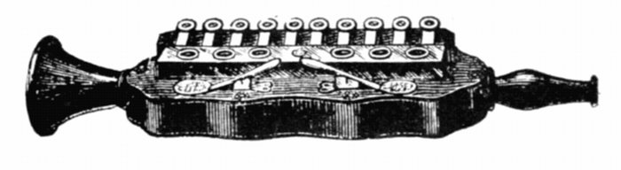 | The Clover Harmoniphone is an entirely new and novel invention, combining one of the famous Clover Harmonicas with a metal Phone. The Phone adds greatly to the richness and purity of tone and increases the volume many times over. Acting like a horn on a phonograph it takes up every note whether faint or loud and sends them forth with wonderful effect. One Phone will last a lifetime as it is fitted with flanges from which the mouth organ can be detached or replaced at will. Each Harmoniphone is packed in wooden box complete with instruction book. Per doz. | $9 60 | |