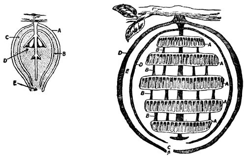 He then split the large bulb down the centre with his knife. With a pin he pointed out the baby flower wrapped up in its spathe. All the parts of the flower were seen, even the little seed-vessel containing the tiny eggs, which become seeds after the flower has grown up.