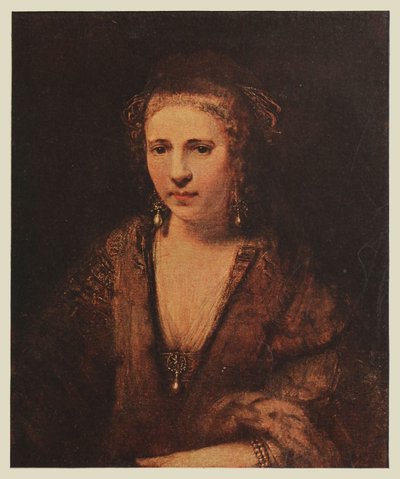 Le portrait d’Heindrickje Stoffels que nous donnons ici ne remonte pas à la période fastueuse de l’artiste, il ne date pas non plus des années de misère totale. Rembrandt a déjà connu la douleur en perdant sa femme adorée Saskia; mais il a trouvé une consolatrice et une amie dévouée en Heindrickje Stoffels, sa servante. Certains biographes ont fait grief au grand artiste de cette liaison, jugée par eux indigne d’un génie comme le sien. Une censure de cet ordre n’a que faire ici. Heindrickje Stoffels vient à Rembrandt au temps de ses plus grands ennuis et le sert fidèlement jusqu’à sa mort. Avec l’énergie et la clairvoyance d’un cœur aimant, elle s’applique à relever la fortune de son maître: elle entreprend la vente des collections du peintre, espérant ramener l’aisance. Cette vente ne produit guère que 5.000 florins. Rembrandt ne peut plus être sauvé; il ne peut plus payer sa maison de la 44 Joden Breestraat, achetée à tempérament; les emprunts s’accumulent, aggravant sa détresse et bientôt il est déclaré en banqueroute. Heindrickje succombe à la peine, à l’âge de trente-six ans. Elle avait donné à Rembrandt deux enfants qui moururent jeunes.