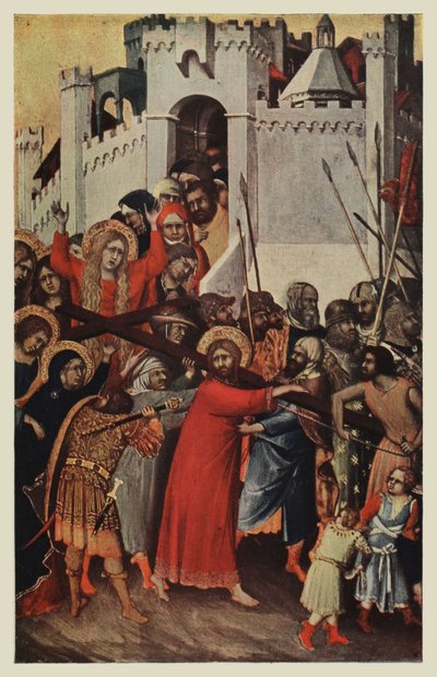 Le Christ marchant au Calvaire est une toile collée sur panneau et plâtrée. Il est impossible de suivre sa destinée durant le cours des siècles. Nous la trouvons en 1834 dans la collection de M. Saint-Denis. Elle fut acquise pour le compte de Louis-Philippe, au prix de 200 francs. Cet admirable petit tableau figure aujourd’hui dans la Salle des Primitifs, avec les peintures de l’École de Sienne.