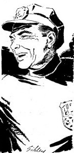 "You can't exert yourself that hard in this heat, fellow," the cop says. "There are laws against that, without a yellow sticker. Here, let me grab you a taxi."