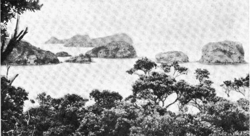 An hour or so later—about nine o’clock, to be exact—the men were startled by an extraordinary noise, apparently coming from the eastern end of the island, a noise unlike anything they had ever heard before. Dropping their tools and staring towards the east, they beheld such a sight as it falls to the lot of few people to witness. There, not five hundred yards from the shore, was being waged a battle to the death—a fight between the great cow whale previously seen and a school of thresher sharks. The calf was swimming about distractedly, but the old bull had disappeared, having basely deserted his family at the first approach of danger.