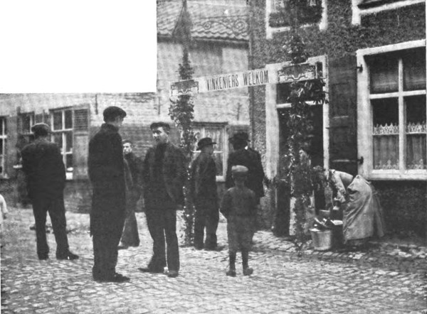 There was one spot in particular towards which the future competitors seemed to be attracted, a rustic inn, over whose portals the flag of the local finch-owners’ club waved lustily in the vigorous breeze, and the cheery greeting, “Vinkeniers Welkom,” attracted the attention of the passers-by. It was here that the organizers and competitors met for the purpose of settling all matters pertaining to 505 the bird-singing contest. Even at 6 a.m. beer has irresistible fascination for the true native of Flanders, and it goes without saying that every entry for the competition called forth a request for at least one “bock” on the part of the competing bird-owner. Others, who came as mere spectators, followed his example, and soon the stream of conviviality flowed freely.