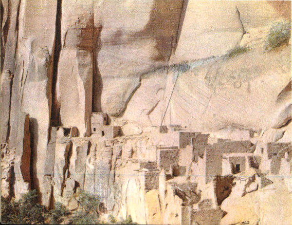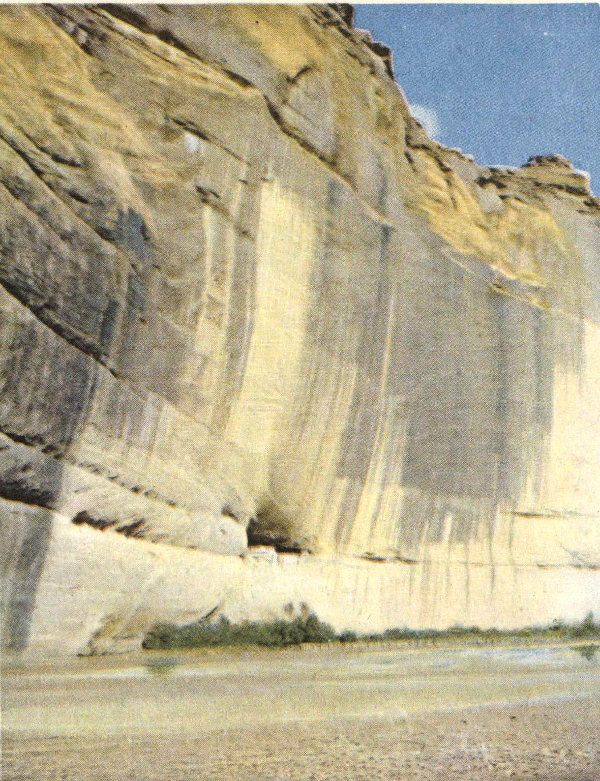 Canyon De Chelly National Monument contains within its borders Canyon De Chelly and Canyon del Muerto, as well as many ruins. It is near Chinle. Photo by J. H. McGibbeny.