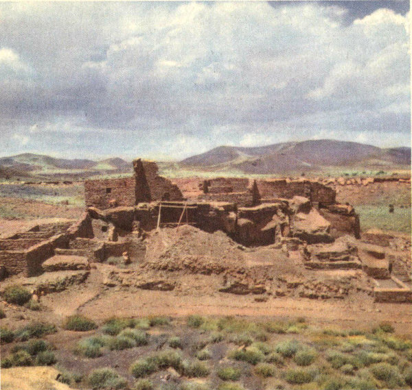 This somewhat desolate region was apparently fairly densely populated by little groups of farming Indians. With no survey or study of the monument area having been made, more than 300 ruin sites have been located and there are many others nearby. These ruins of stone buildings are usually from one to a few rooms in size. However, one ruin near the Puerco River Ranger Station is estimated to have had about 125 or more rooms. It is built in the form of a hollow square about 180 feet by 230 feet, around a plaza about 130 by 185 feet. Probably two stories in height, it could have housed nearly a hundred families.