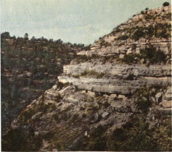 Walnut Canyon. In the walls of this canyon, near Flagstaff, under overhanging ledges are a series of prehistoric Indian ruins. National Park Service Photo.