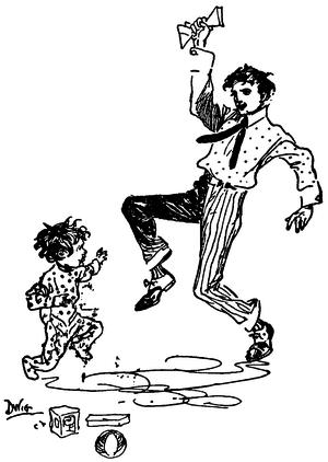 The experiences of the next few moments were more pronounced and revolutionary than pleasing to relate in detail. It is sufficient to say that Toddie's weight was materially diminished, and that his complexion was temporarily pallid. Father O'Kelley arrived at a brisk run, and was honestly glad to find that his services were not required, although I assured him that if Catholic baptism and a sprinkling of holy water would have im235proved Toddie's character, I thought there was excuse for several applications. We rode quietly back to the house, and while I was asking Maggie to try and coax Toddie into taking a nap, I heard the patient remark to his brother:—