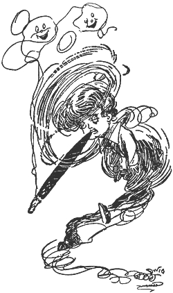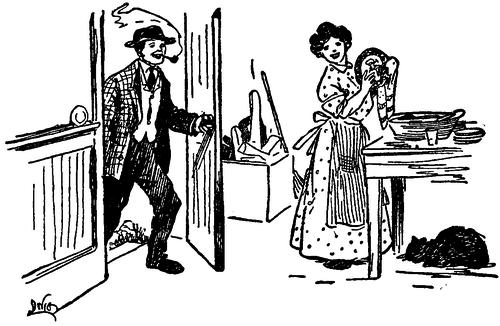 Then Helen walked down to Mrs. Clarkson's boarding-house, all for the purpose of showing a lady there, with a skirt to make over, just how she had seen a similar garment rearranged exquisitely. And Alice strolled down to the gate with her to say good-by; and they had so much to talk about that Helen walked Alice nearly to our house, and then insisted on her coming the rest of the way, so she might be driven home. And242 then Mike was sent back with a note to say to Mrs. Mayton that her daughter had been prevailed upon to stay to evening dinner, but would be sent home under capable escort. And after dinner was over and the children put to bed, Tom groaned that he must attend a road-board meeting, and Helen begged us to excuse her just a minute while she ran in to the doctor's to ask how poor Mrs. Brown had been doing, and she consumed three hours and twenty-five minutes in asking, bless her sympathetic soul!