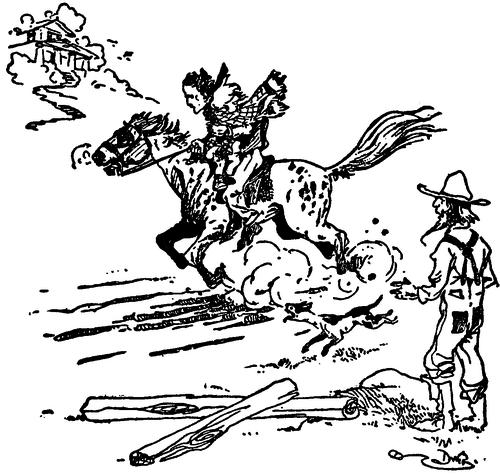 Suddenly, the label caught my eye—it read PAREGORIC. In a second I had snatched a shawl, wrapped Toddie in it, tucked him under my arm, and was on my way to the barn. In a moment more I was on one of the horses and galloping furiously to the village, with Toddie under one arm, his yellow curls streaming in the breeze. People came out and stared as they did at John Gilpin, while one old farmer whom I met turned his team about, whipped up furiously, and followed me, shouting, "Stop, thief!" I afterward learned that he took me to be one of the abductors of Charlie Ross, with the lost child under my arm, and that visions of the $20,000 reward floated before his eyes. In front of an apothecary's I brought the horse suddenly234 upon his haunches, and dashed in, exclaiming:—