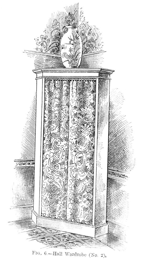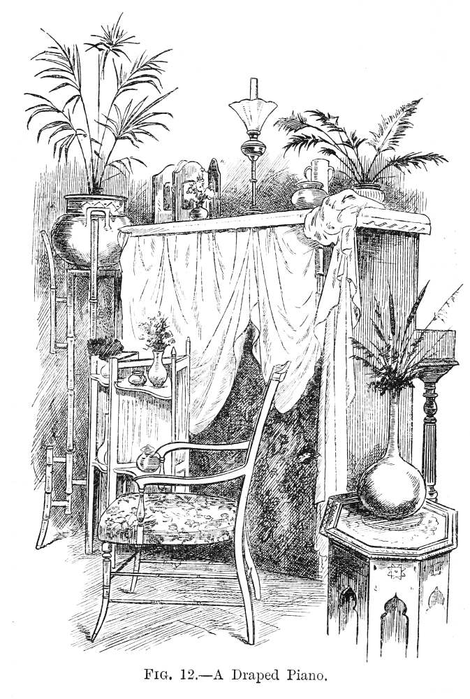 Formerly people rather scorned the idea of being ‘house-proud’ in the same manner in which all are nowadays. Their house-pride was merely expressed in the amount of gilding compressed into a single room; in the thickness of their carpets, the heaviness of their draperies, and the general costliness of the plenishing, and the amount of money these things had cost was far more often spoken of than anything else; while the name of the upholsterer was mentioned, not as a guarantee that taste and skill had been called into action, but as a proof that money in this case had not been an object. Formerly, did I say? Alas! cases still exist of this heavy and depressing style of thing! Money is poured out like water on carpets that are nightmares, and on papers that are as absolutely meaningless as they are ugly, and the despair of anyone who is called in, as I am constantly, to mitigate the horrors of some gigantic monument of bad taste and lavish expenditure.