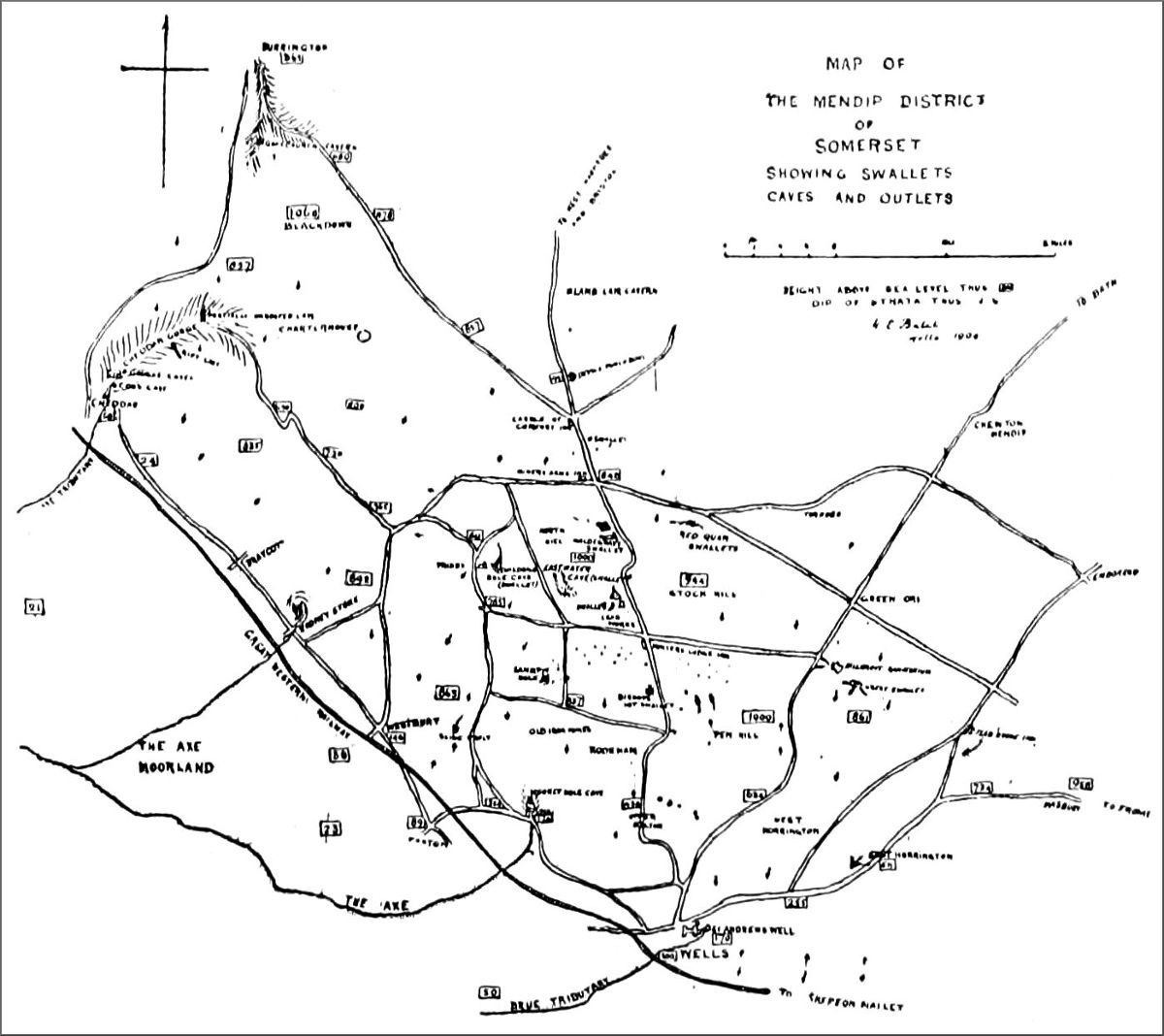The objects of this work are twofold: to describe the actual incidents of various interesting episodes in the modern sport of cave exploring, and to give an account of the scientific results of underground investigations in the Mendip region of Somerset. Speleology is the latest of the sporting sciences: like orology and Arctic exploration, it has two sides, sport and adventure being the lure to some, whilst others are chiefly attracted by the new light thrown by these researches on the geology, the hydrology, and the natural history of the subterranean regions explored. The chapters dealing with the scientific results are by H. E. Balch, who has been working on the geology of Mendip, more especially among the caves, for upwards of twenty years: the accounts of actual experiences, in which the sporting side is predominant, are by E. A. Baker, who described the recent exploration of the Derbyshire caves in his Moors, Crags, and Caves of the High Peak, 1903. No attempt is made to traverse the ground so perfectly covered by Professor Boyd Dawkins in his fascinating volume on Cave Hunting, and elsewhere, most of the work described here being supplementary to that done by him, and, largely, outside the scope of his aims. The authors are indebted to the kindness of the Editors[vi] of the Liverpool Courier and Daily Post, the Manchester Guardian, the Standard, the Yorkshire Post, the Irish Naturalist, and the Climbers' Club Journal for permission to use the substance of various articles which have appeared in their pages, and to M. Martel, Mr. C. Blee, and Messrs. Gough for permission to reproduce a number of excellent illustrations by them.
