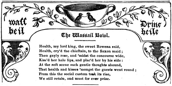 Now, on New-year’s-day as on the previous eve, the wassail bowl is carried from door to door, with singing and merriment. In Devonshire,