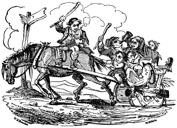 From the “Wassail” we derive, perhaps, a feature by which we are distinguished. An Englishman eats no more than a Frenchman; but he makes yule-tide of all the year. In virtue of his forefathers, he is given to “strong drink.” He is a beer-drinker, an enjoyer of “fat ale;” a lover of the best London porter and double XX, and discontented unless he can get “stout.” He is a sitter withal. Put an Englishman “behind a pipe” and a full pot, and he will sit till he cannot stand. At first he is silent; but as his liquor gets towards the bottom, he inclines towards conversation; as he replenishes, his coldness thaws, and he is conversational; the oftener he calls to “fill again,” the more talkative he becomes; and when thoroughly liquefied, his loquacity is deluging. He is thus in public-house parlours: he is in parties somewhat higher, much the same. The business of dinner draws on the greater business of drinking, and the potations are strong and fiery; full-bodied port, hot sherry, and ardent spirits. This occupation consumes five or six hours, and sometimes more, after dining. There is no rising from it, but to toss off the glass, and huzza after the “hip! hip! hip!” of the toast giver. A calculation of the number who customarily “dine out” in this manner half the week, would be very amusing, if it were illustrated by portraits of some of the indulgers. It might be further, and more usefully, though not so agreeably illustrated, by the reports of physicians, wives, and nurses, and the bills of apothecaries. Habitual sitting to drink is the “besetting sin” of Englishmen—the creator of their gout and palsy, the embitterer of their enjoyments, the impoverisher of their property, the widow-maker of their wives.