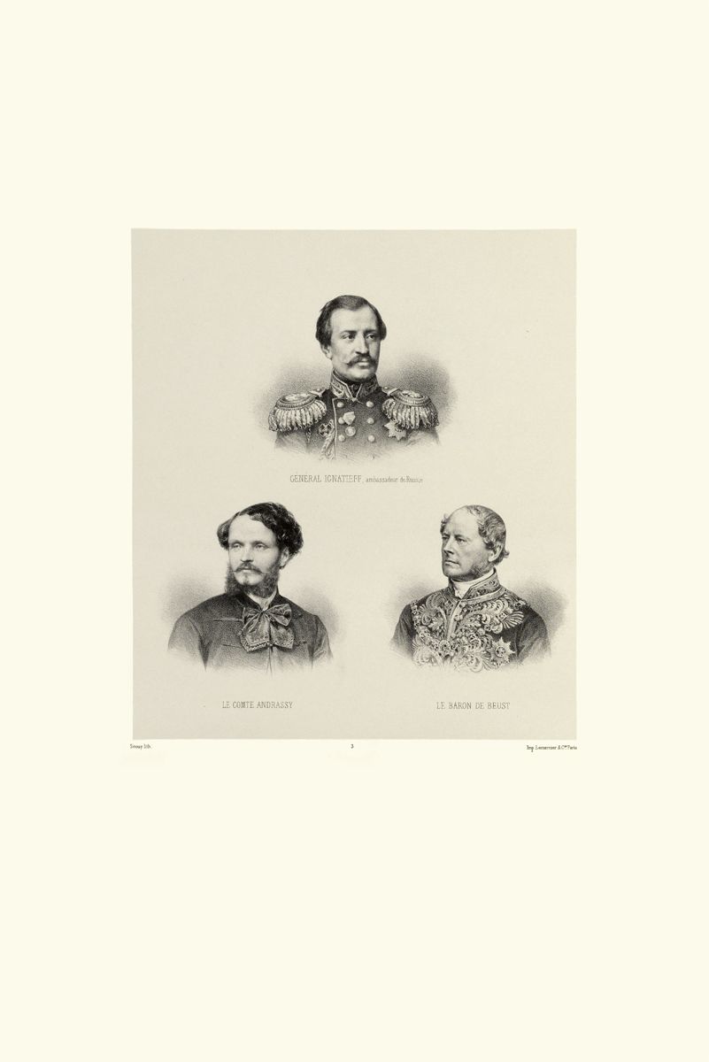 Enfin M. de Beust, président du conseil des ministres d’Autriche, et M. Andrassy, président du ministère hongrois, accompagnaient Sa Majesté l’empereur et roi François-Joseph Ier.