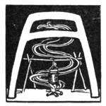Dreamily is Ngawai staring into the embers, whilst the pale new morning is crawling through the spaces between the fern-stems which form the walls of the mountain-whare (hut).