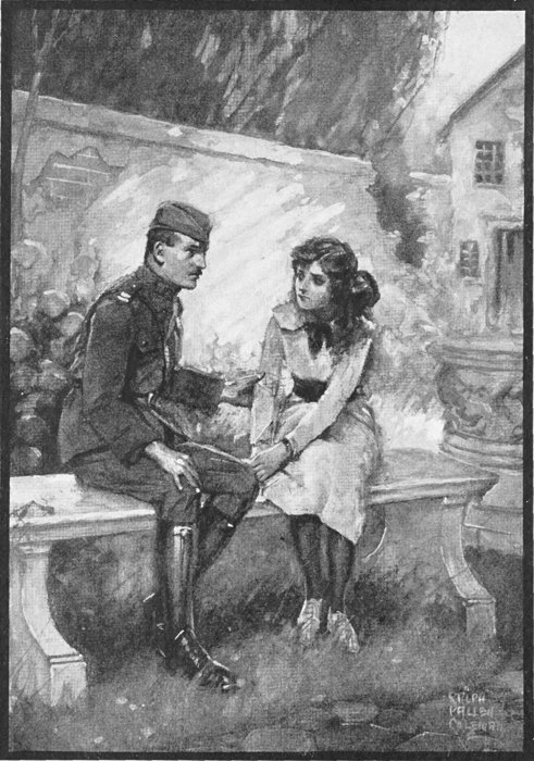 “I should think so!” exclaimed Janet, sitting up with a sudden return of energy at sight of a quick moving figure among the gardens. “Think if you’d been left way off in America.” She turned to her cousin as she spoke with a look of real understanding, for already frank, generous Janet felt a warm friendship for the courageous little American, and found in Lucy no less a devotion than her own to the Allies’ cause. “Here comes Mary Lee,” she said, nodding toward the advancing figure of a tall girl of eighteen, dressed, like themselves, in khaki working suit. “Time’s up, I guess.”