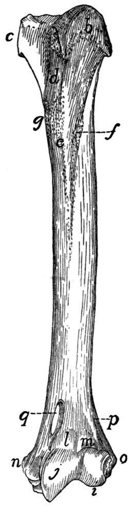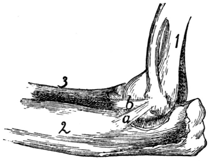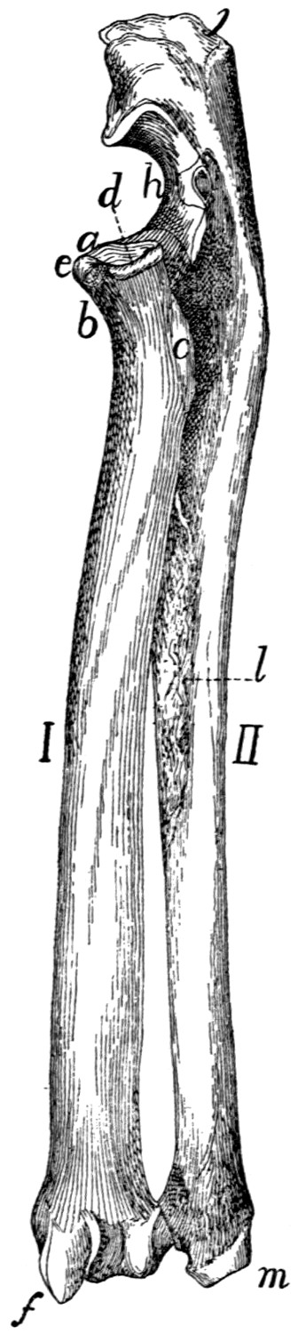 In describing the limbs the convexity of the joint (the elbow or knee) is considered as dorsal, the concavity being therefore[viii] ventral. Medial refers to that side of the limb which in the normal position is toward the middle of the body; lateral to the outer side. Terms of direction which are derived only from the structure of the limb itself are in some cases more convenient than the usual ones. In the fore limbs the terms radial (referring to the side on which the radius lies) and ulnar (referring to the side on which the ulna lies) are used; in the hind limbs the terms tibial and fibular are used in a similar manner. Distal means toward the free end of a limb or other projecting structure; proximal, toward the attached end.