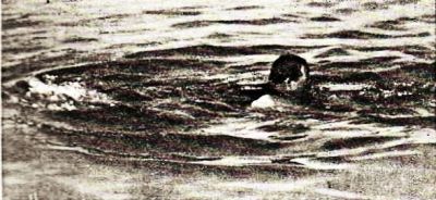 The sand-piper always flies on a dead level, about a foot above the water, unless the flock is flying high to escape some obstruction. He propels himself with a jerky motion of the wings, a stroke, and then an instant's soaring, at a pretty fair rate of speed. The "yellow leg," a larger variety, on the contrary, flies quite high, and sometimes in the formations adopted by the wild-duck. They can always be recognized by their peculiar whistling call. The predominating colors of the snipe family are gray and white, though some few have a touch of brown on the back plumage. There is also a slight variation in the length and shape of the bill, though the character is about the same in all. The legs of the snipe are long and a greenish-yellow in color; those of the "yellow leg" being almost a bright yellow. The sand-piper is a very rapid walker, or perhaps, more properly, runner, and this remarkable facility should always be borne in mind when a bird is only "winged." When not frightened they usually travel in a very irregular course along a beach, but when frightened they will make as straight a line as the best sprinter. These little birds are very good swimmers and divers, remaining under water for a long time, propelling themselves with great rapidity by the use of their wings.