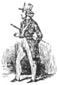 Pour qu’un jeune homme fût à la mode, il lui fallait un habit de drap fin ou de soie, suivant la saison, qui serrât exactement la taille et les bras, car on avait la prétention de paraître mince; l’embonpoint sentait la roture, et le ventre était à l’index, comme chose prohibée. L’élégant petit-maître sortait encore un gilet d’une étoffe chinée ou d’un drap chamois, des culottes de sénardine couleur jaune pâle ou gris de lin, des bas de soie à raies longitudinales et variées, des souliers étroits et lustrés à la cire luisante, des boucles d’argent taillées à facettes comme le diamant. L’été, on lui voyait un léger bambou à la main; l’hiver, il jetait sous son bras gauche un énorme manchon à longs poils soyeux, dans lequel il se serait bien gardé de cacher ses mains quand il se promenait aux Tuileries ou au Palais-Royal. N’oublions pas le chapeau de castor, qui, pendant un ou deux ans, fut d’une hauteur démesurée. Paris l’avait emprunté aux Hollandais. Je pourrais bien retracer ici ce qu’on appelait le négligé pour une certaine classe de jeunes fashionables du haut parage, auxquels on pouvait appliquer ce trait de Gilbert: